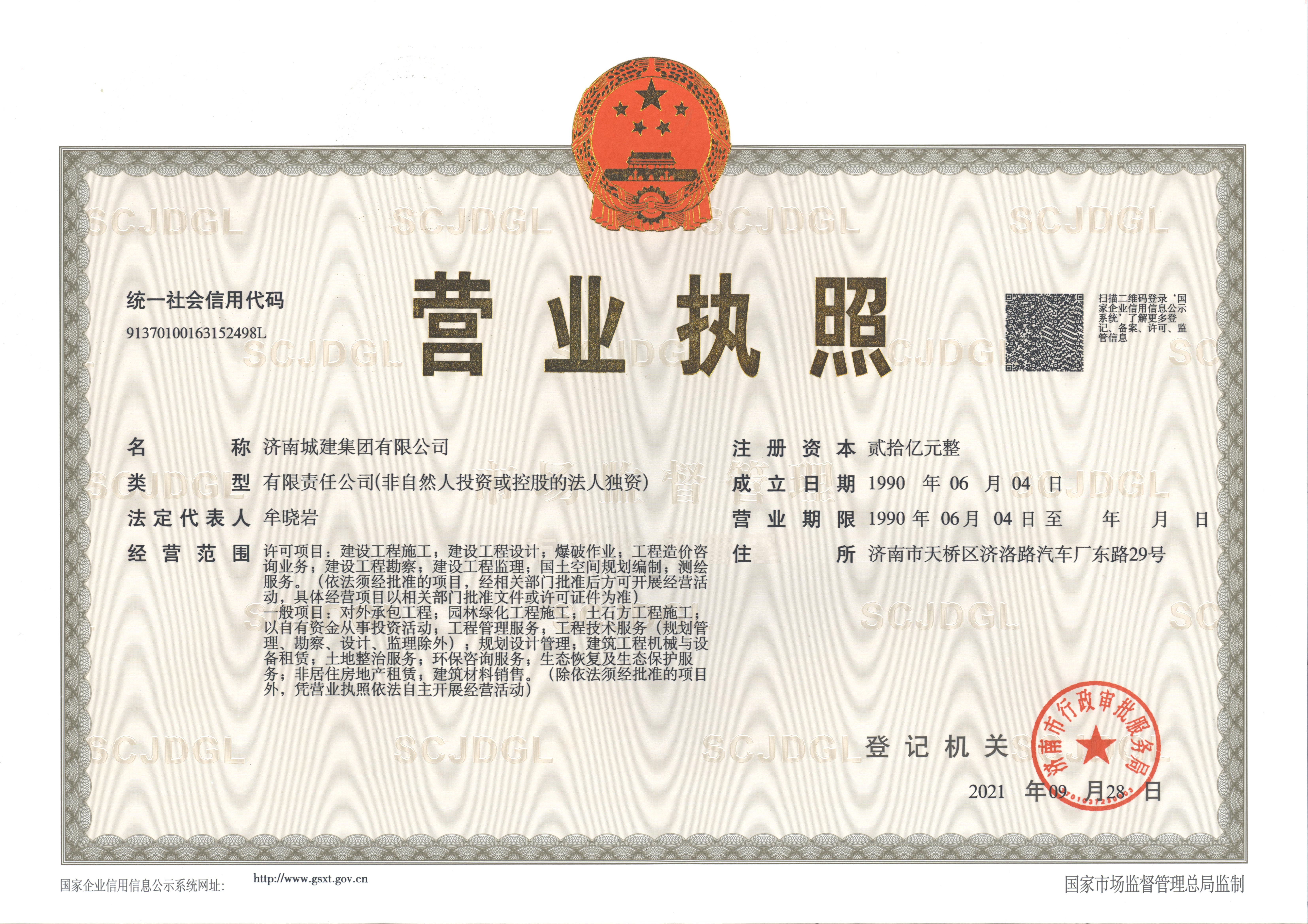 濟(jì)南城建集團(tuán)有限公司始建于1929年,是具有近百年發(fā)展歷史的國(guó)有大型企業(yè),注冊(cè)資本金30億元。擁有市政公用工程施工總承包特級(jí)、建筑工程施工總承包壹級(jí)、公路工程施工總承包壹級(jí)資質(zhì)和工程設(shè)計(jì)市政行業(yè)甲級(jí)、工程設(shè)計(jì)建筑行業(yè)甲級(jí)等100余項(xiàng)資質(zhì)。年施工能力500億元以上,綜合實(shí)力位居山東省建筑企業(yè)十強(qiáng)、山東省市政行業(yè)龍頭、全國(guó)市政行業(yè)前列。
