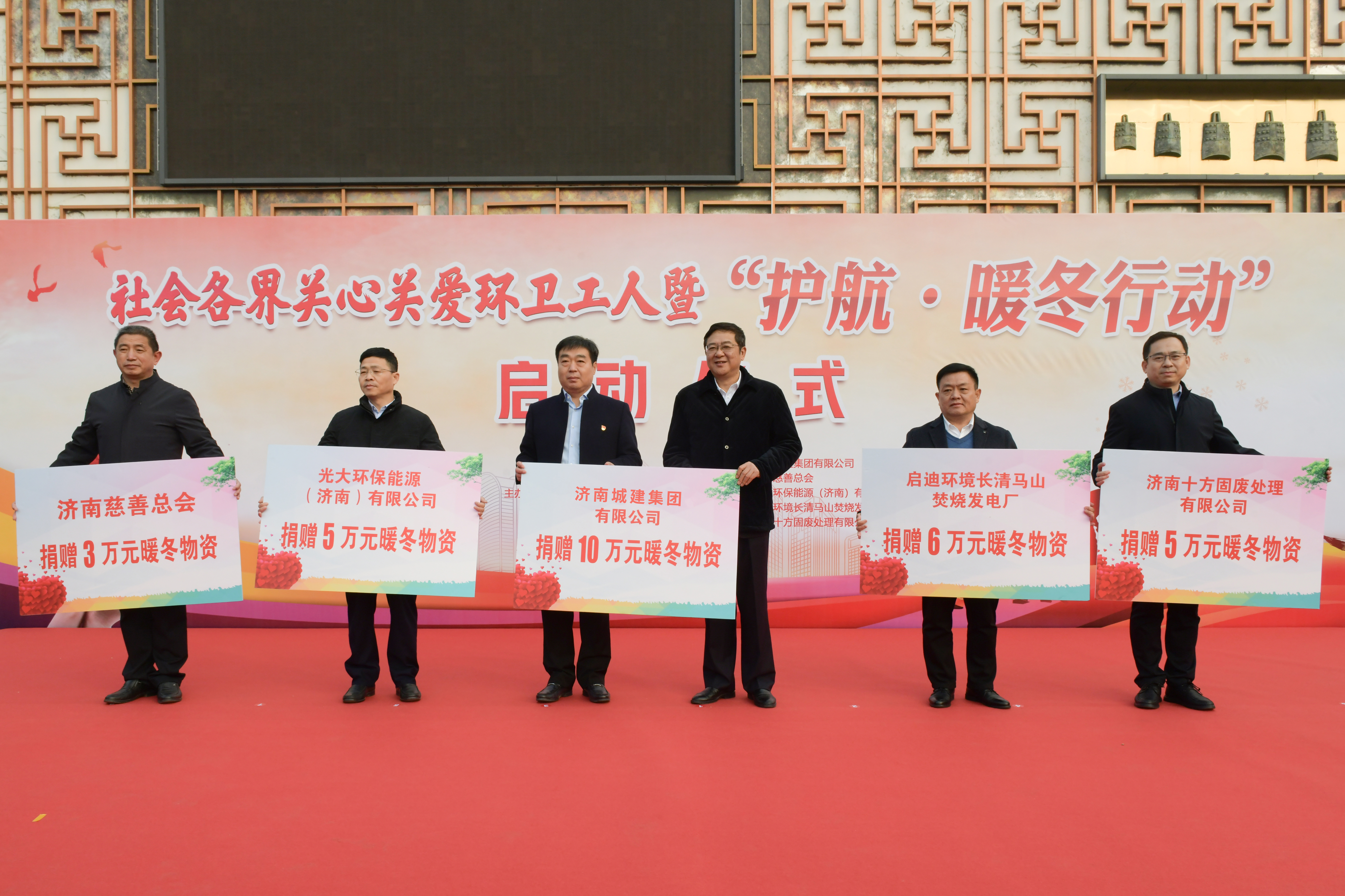 12月9日下午,濟南市城市管理局聯(lián)合濟南廣播電視臺舉辦社會(huì )各界關(guān)心關(guān)愛(ài)環(huán)衛工人暨“護航·暖冬行動(dòng)”。濟南市城市管理局黨組書(shū)記、局長(cháng)孫世會(huì ),濟南廣播電視臺黨委書(shū)記、臺長(cháng)文東河,集團黨委書(shū)記、董事長(cháng)、總經(jīng)理牟曉巖等有關(guān)單位負責人參加活動(dòng)。