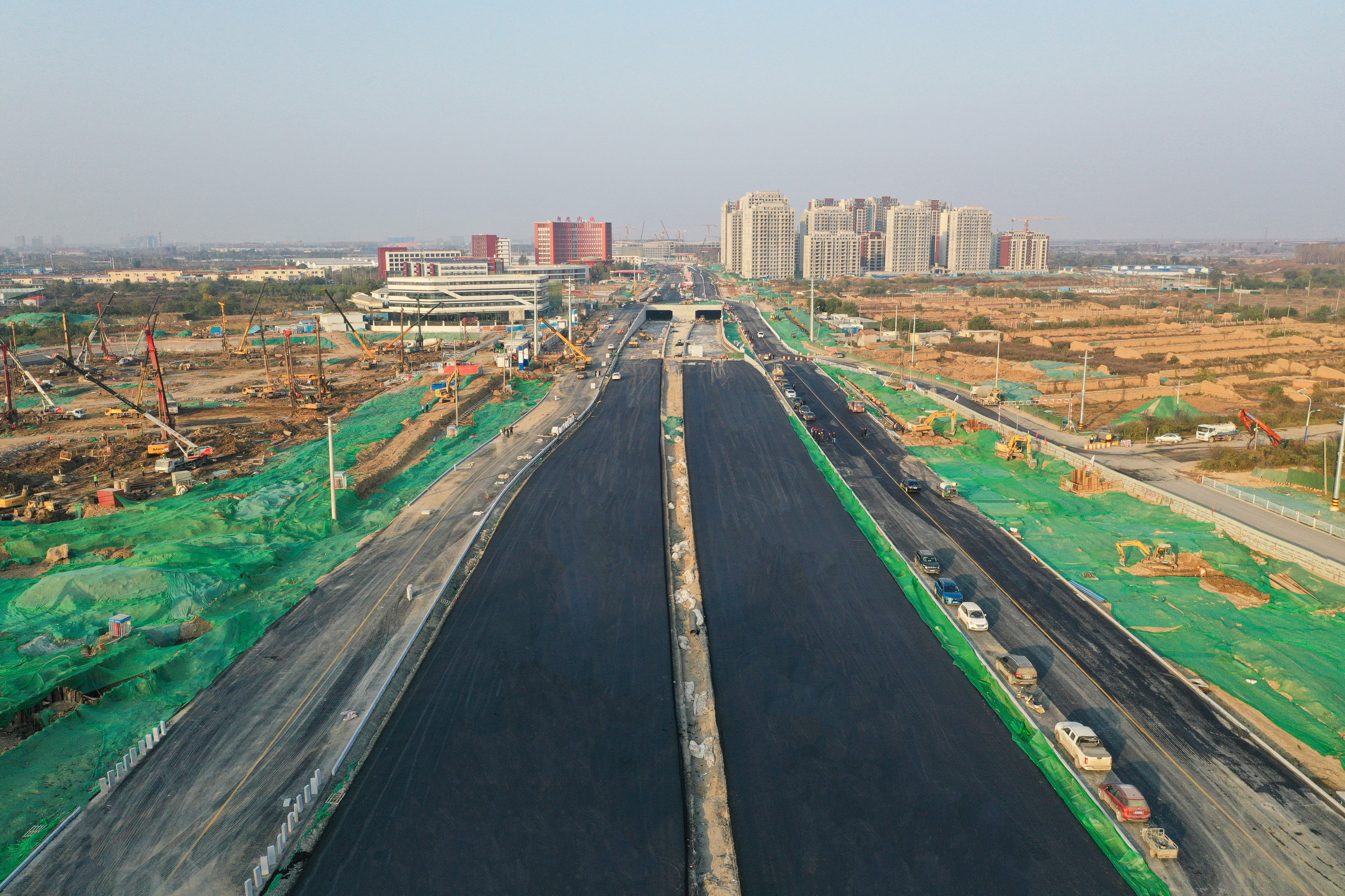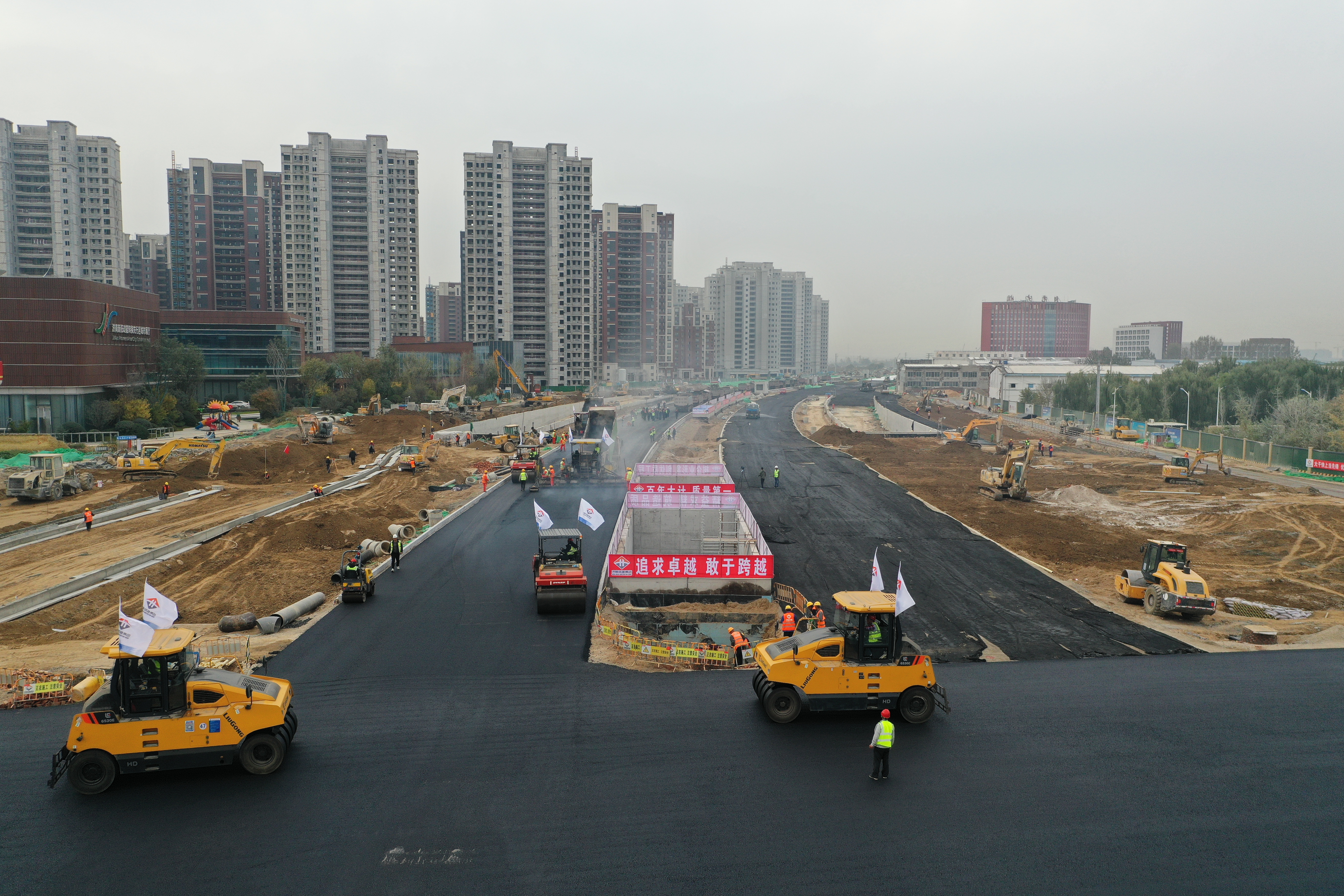 黃河大道是串聯(lián)黃河北岸核心城市組團,促進(jìn)黃河北岸社會(huì )經(jīng)濟高質(zhì)量協(xié)同發(fā)展的重要基礎設施工程,對起步區發(fā)展具有重大意義。集團充分發(fā)揚“城建鐵軍”精神,提前謀劃、合理安排施工進(jìn)度,迅速掀起施工熱潮,確保工程全速推進(jìn)。